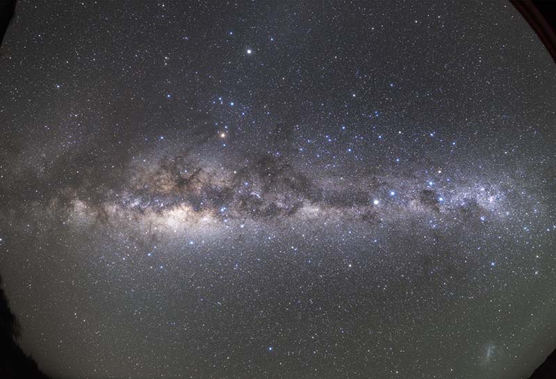 天の川銀河は10万光年の大きさで、その中心から3万光年離れたところに太陽系があります。銀河系は円盤状のため、地球から見れば光の帯が地球をぐるりと取り巻いているように見えます。これが天の川です。天の川の中心部(バルジと言います)は高度は低いものの日本でも見ることができますが、オーストラリアでは天頂に輝きます。全天にアーチ橋のようにかかる銀河の姿は、圧巻です。
