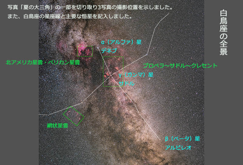 各写真のリンク先北アメリカ星雲・ペリカン星雲 網状星雲 プロペラ~サドル~クレセント 夏の大三角 二重星 アルビレオ網状星雲 NGC6992 網状星雲 NGC6960