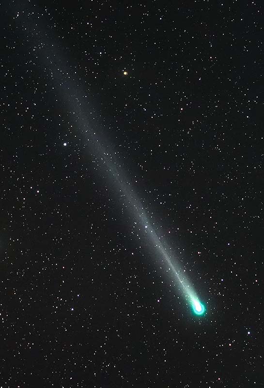 平成25年は春のパンスターズ彗星、年末のアイソン彗星など”彗星イヤー”といわれました。特にアイソン彗星は今世紀最大級になるのではないかと期待されましたが、太陽に接近した際、強大な熱と重力に耐えきれず崩壊してしまいました。写真のラブジョイ彗星はあまり話題になりませんでしたが、ピークが4等級程の明るさになり肉眼で見える彗星になりました。もしも初めからアイソン彗星が無ければ、じゅうぶん星空の主役になれるほどの彗星でした。